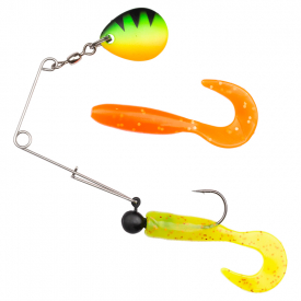 Deze micro spinnerbait is goed uitgebalanceerd en voorzien van een PowerBait geurende grub. De combinatie van het spinnerblad en de onweerstaanbare staartactie zal aanbeten uitlokken, vooral wanneer het vissen traag verloopt. Hij wordt geleverd met twee verschillende kleuren grub, maar je kunt deze spinnerbait arm ook combineren met andere jigkoppen & zacht kunstaas.