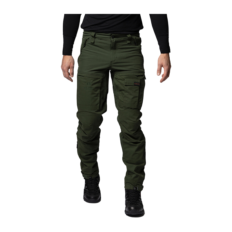 Vierwegs stretch rond taille, kruis en knieën geeft veel bewegingsvrijheid bij het klauteren langs oevers of het bukken in de boot. De stille, gebrushte stof is handig bij het vissen of jagen, wanneer elke beweging telt. Met in totaal zes zakken, meerdere lussen voor gereedschap of accessoires en kniezakken voor extra bescherming blijft het materiaal netjes georganiseerd en binnen handbereik. Verstelbare broekspijpen met bevestiging voor laarzen zorgen dat de pijpen niet opkruipen op modderige oevers of ruig terrein.