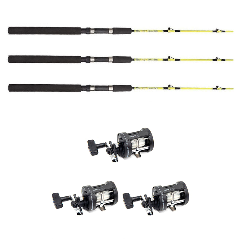 Fladen Ismetescombo 130cm Högervev 3-Pack – een set met drie ijsvis-combo’s. Bevat drie Fladen Ice Pike-hengels van 130 cm en drie Fladen Warbird GCT20-molens met voorgespannen 0,40 mm nylonlijn.