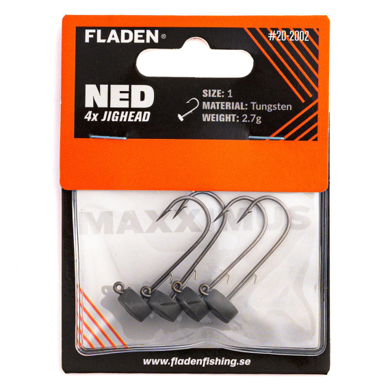 Ontdek de hoogwaardige Fladen NED Maxximus Tungsten Jig Heads. Perfect voor precisievissen, beschikbaar in gewichten van 2,7 gram, 3,5 gram en 5,3 gram.