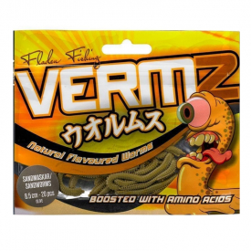 Fladen’s Vermz zijn imitaties van natuurlijke wormen. Ze zien er uit en ruiken/smaakt net als natuurlijke wormen, en zijn versterkt met natuurlijke aminozuren. De aardwormen zijn het perfecte aas voor de meeste soorten. Bloedwormen, d.w.z. de larven van niet bijtende muggen, zijn ook perfect voor de meeste soorten, en doen het bijzonder goed bij bijvoorbeeld het wintervissen op baars en wildvis. Fladen’s Vermz Sandworm is een perfecte imitatie van een zandworm of wadpier van de familie, Polychaete. Het ziet eruit en ruikt/smaakt als een echte zandworm. Perfect voor het bodemvissen op de meeste vissoorten, en gemonteerd op een jigkop of jig.