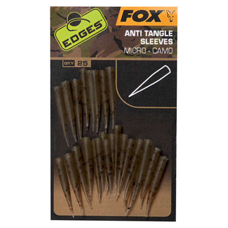 Fox Edges Camo Micro Anti Tangle Sleeves 25st zijn ontworpen om klitten te voorkomen en Kwik Change Swivels af te dekken.