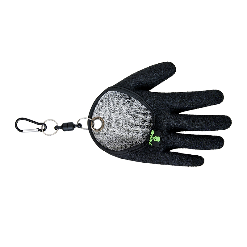 De mix van onder andere latex, high density polyurethaan, polyester en spandex zorgt voor een stevige maar toch soepele handschoen. Robuust genoeg voor scherpe tanden en ruwe snoekbekken, maar compact zodat hij weinig plek inneemt in tas of jaszak. Met de karabijnhaak klik je hem eenvoudig aan je tas of riem, zodat hij altijd binnen handbereik is. Beschikbaar in zowel links- als rechtshandige uitvoering, passend voor de meeste serieuze snoekvissers.