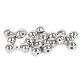 Dumbells van verschillende grootte met ogen aan elke kant.