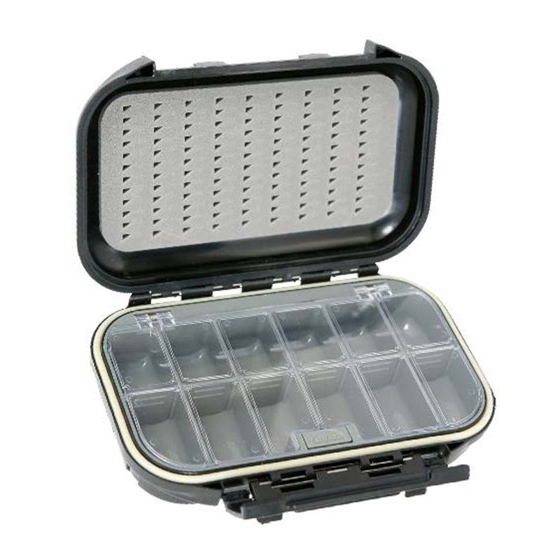 Drie dozen die perfect zijn voor alles wat nodig is voor een succesvolle dag op het ijs. Het deksel is bedekt met gesneden siliconen voor haken enz. en de bodem heeft verschillende verstelbare vakken voor jigs.