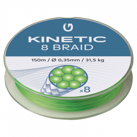 Kinetic 8 Braid 150m Fluo Green is een gevlochten lijn van 8 vezels zonder rek met een consistent profiel voor lange worpen in fluo-groene kleur. Een lang werpende gevlochten lijn voor een goede prijs!