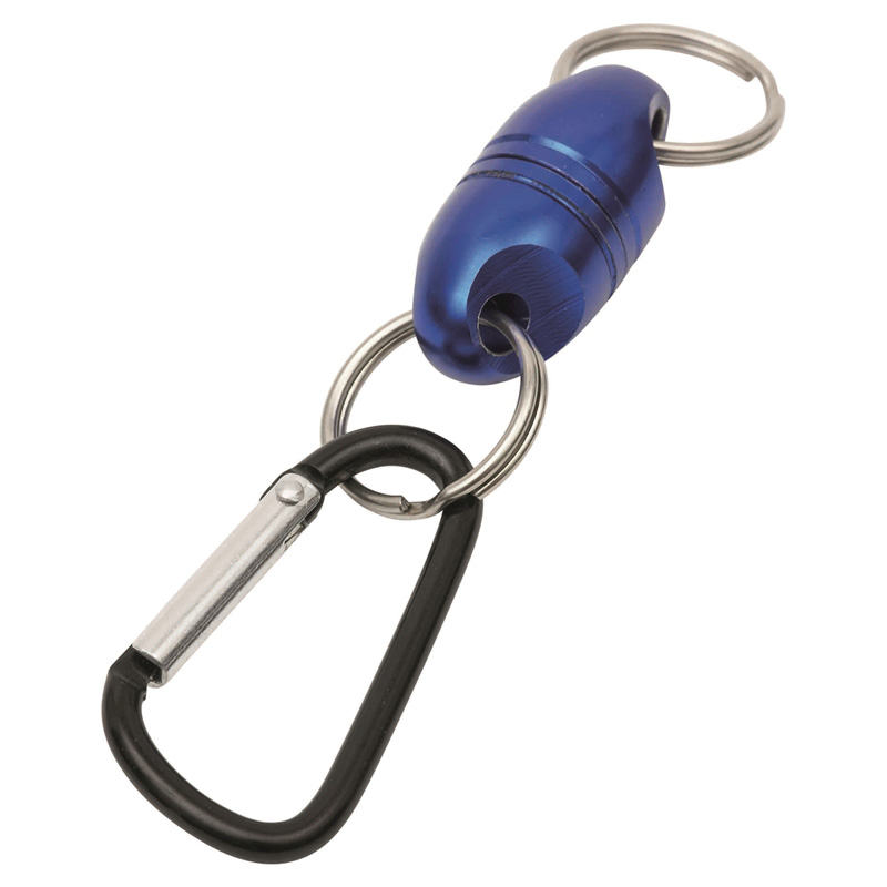 De Kinetic Magnetic Release bevat supersterke magneten om de veiligheid van een opgeborgen net te garanderen, zelfs wanneer je door dicht struikgewas trekt. Veiligheidshaak en splitringen voor bevestiging aan rugzak of vest. Kan ook worden gebruikt met knippers, tangen en ander visgereedschap.