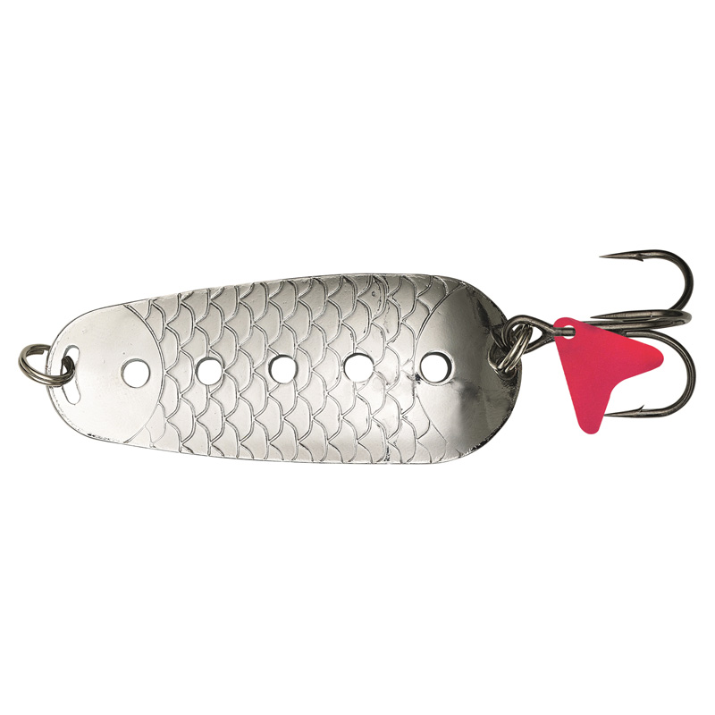 De Kinetic Spoony heeft een grillige actie die een vluchtende aasvis nabootst – levert onderwater trillingen en aandachttrekkende flitsen. De kleine gaatjes creëren subtiele trillingen, die de vis verleiden tot een aanval. Werkt geweldig voor grote roofvissen zoals snoek en zalm.