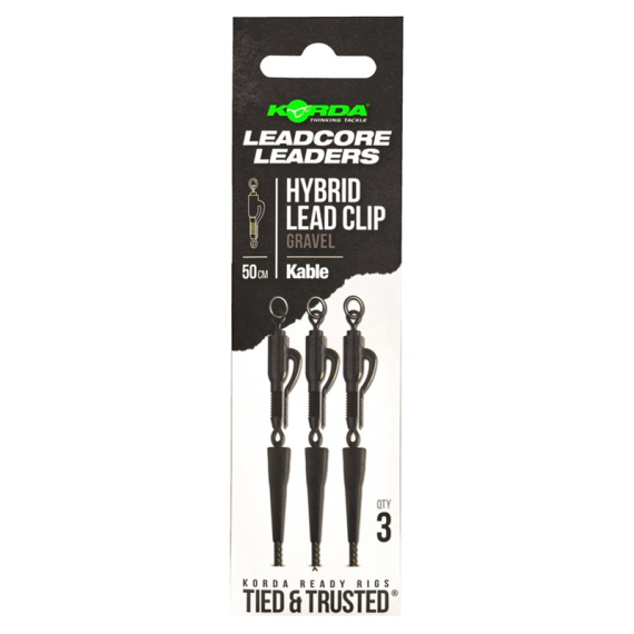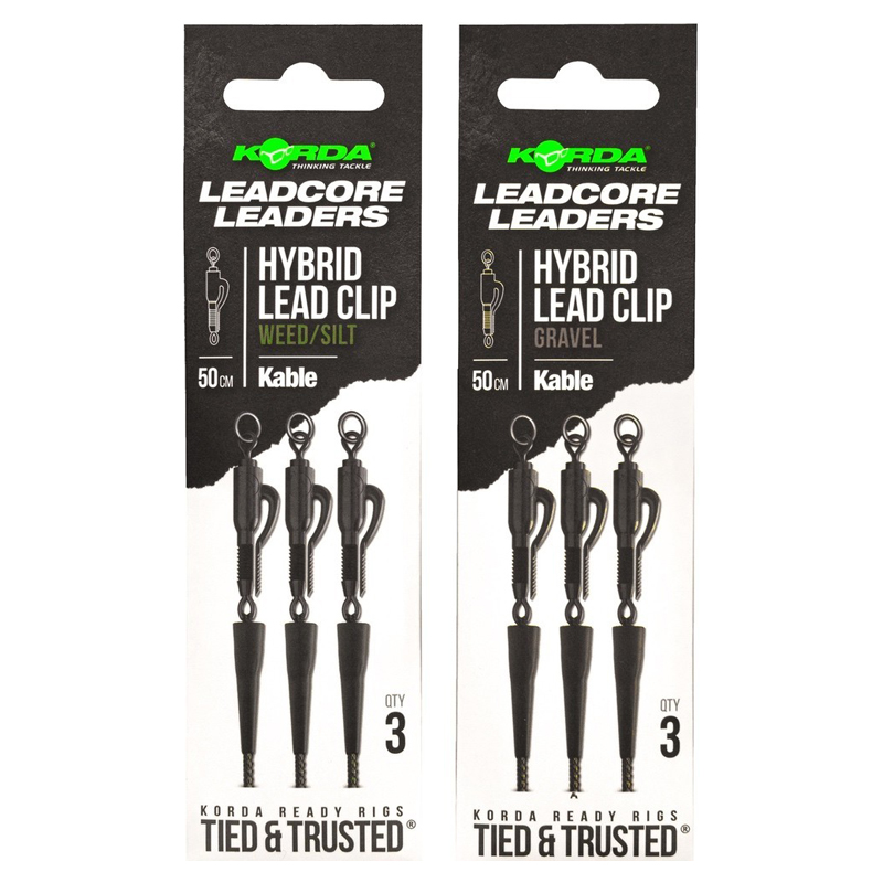 Elke leader is gemaakt van onze extreem slijtvaste en snel zinkende Kable Leadcore, met een Hybrid Lead Clip aan het ene uiteinde en een gesplitste lus aan de andere kant voor eenvoudige bevestiging aan je hoofdlijn.