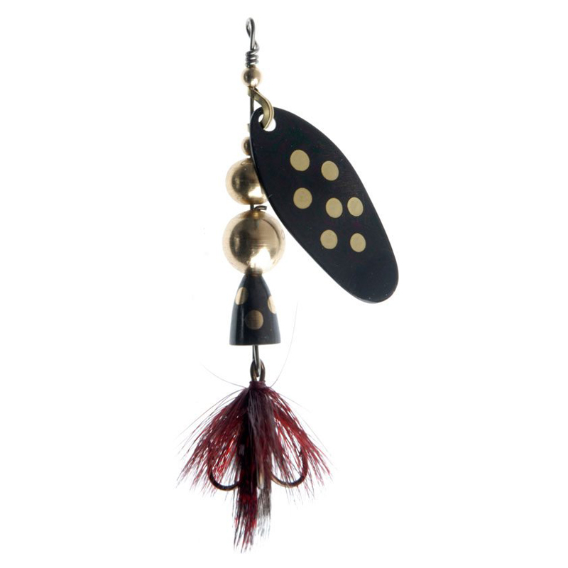 De spinner heeft een insectenachtig lichaam, een lepel die start zonder schokken, sterke lus, beweegbare haak en is ook gemakkelijk te werpen. Het patroon van de vlieg is zorgvuldig getest. De spinner spint ook bij langzaam ophalen. Verkrijgbaar in 2 - 4 - 5 - 7 - 10 - 15 - 20 Gram. Lepel Kleur: Zilver - Goud - Koper - Zwart.