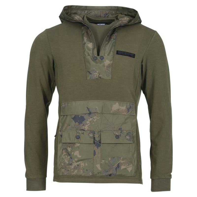 De Lite Hoody, perfect voor zomerse sessies waarbij extra warmte nodig is aan het begin of einde van de dag, combineert stijl met comfort door het gebruik van katoen en elastaan. Dit kledingstuk is essentieel voor karpervissers, met een geïntegreerde muggennet gezichtsbedekking voor comfortabele nachtsessies zonder insectenoverlast.