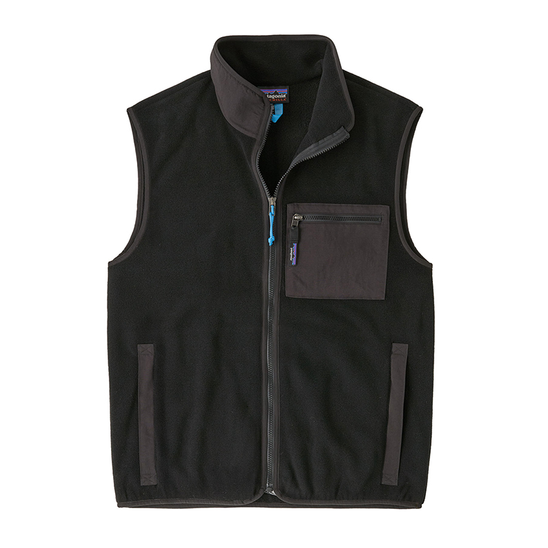- Vest met volledige ritssluiting en doorlopende opstaande kraag voor warmte; de buitenkant van de kraag is afgezet met nylon effen weefsel