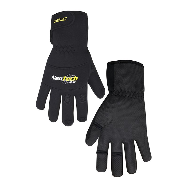 De Patriot NeoTech handschoenen zijn gemaakt van 2 mm dik, duurzaam en elastisch neopreen en ontworpen voor comfortabel gebruik het hele jaar door. Dankzij de goede pasvorm houden ze je handen warm en bieden ze toch voldoende bewegingsvrijheid, ideaal voor (roof)vissers aan de waterkant, jagers, winterzwemmers en andere buitensporters. De openklapbare vingertoppen zorgen ervoor dat je met de handschoenen aan gemakkelijk knopen kunt leggen, rigs kunt knopen, je molen of baitcaster nauwkeurig kunt bedienen of je telefoon kunt gebruiken. Een verstelbaar bandje bij de pols en een gripprofiel in de handpalm geven extra controle bij het drillen en landen van vis en bij natte omstandigheden.