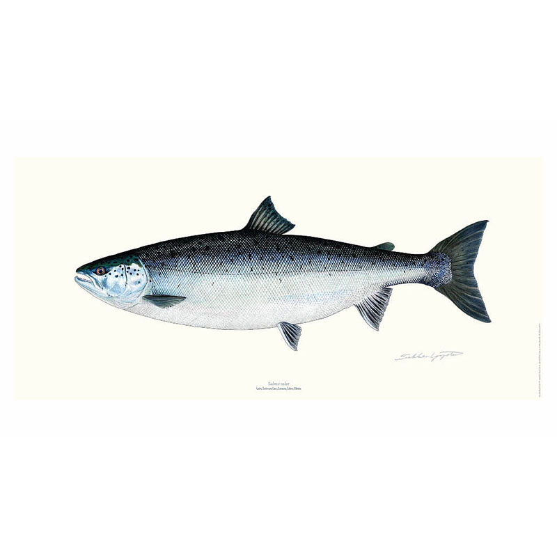 Poster Zalm 23x50cm is een leuke poster met een motief van een zalm. Geef jezelf of een andere zalmvisser iets leuks om aan de muur te hangen!