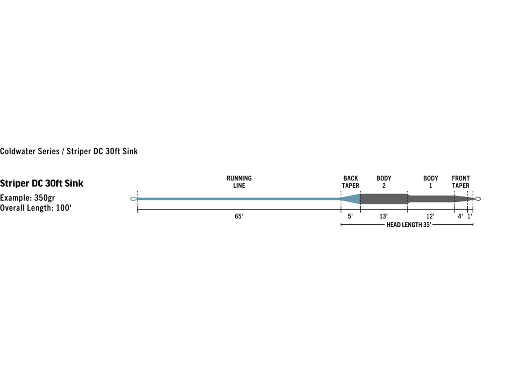 De RIO Premier Striper 30' Sink Tip heeft een 30ft zinkende tip en een zwaardere belly, ideaal voor het vissen op striper. Deze lijn is eenvoudig uit te werpen, zelfs bij moeilijkere omstandigheden. De lijn is verkrijgbaar in drie varianten: Flyt (blauwe belly en gele running line), Intermediate (doorzichtige belly met lichtgevende running line) en 30' Sink Tip (zwarte belly, running line kleur varieert per gewicht/klasse). Dankzij de SlickCast-coating biedt de lijn minimale wrijving en maximale werpafstand.