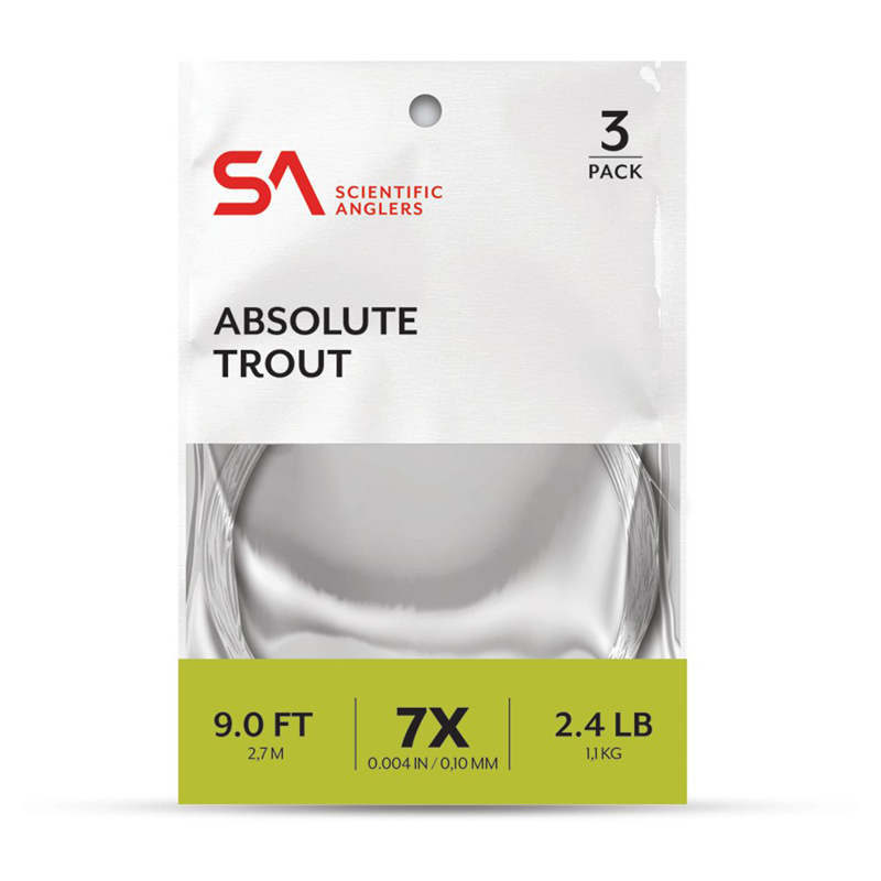 SA Absolut Trout Finesse Leader heeft tot 29% hogere breeksterkte wanneer hij nat is in vergelijking met de vorige nylon leaders van Scientific Angler, en dit materiaal is 40% sterker in knopen wanneer hij nat is in vergelijking met hun concurrenten.
