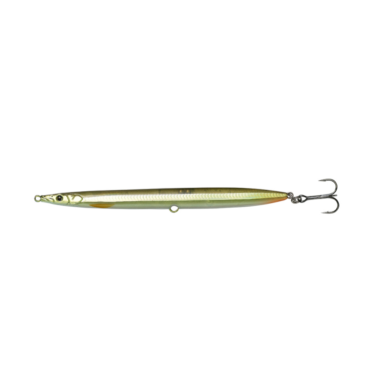 Gebaseerd op een 3D scan van een echte zandspiering. Zwemt met een verleidelijke slanke S-curve, kop licht omhoog. Bij het stoppen fladdert en rolt het kunstaas achteruit – het lokt harde aanbeten uit. Het kunstaas heeft een ingebouwde ratelkamer, die een luid klikkend geluid voortbrengt bij het twitchen. Extreem lange worp ontwerp voor een geweldige dekking. Geleverd met zowel een enkele als een dreg, met de optie om de dreg ook aan de buik toe te voegen.