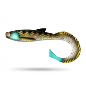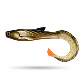 De Scout Shad Curly is een groot rubber aas van 30 cm dat dankzij zijn speciaal ontworpen staart beweegt als een droom in het water.