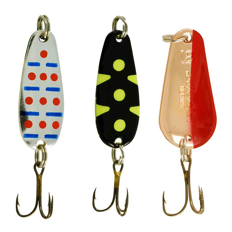 Dit klassieke setje lepels is ideaal voor wie gericht op baars en andere rovervis in zoet water wil vissen, van bergmeren tot poldersloten. De rood-koperen Spesial Classic van 7 g is een allrounder die het vaak goed doet als niets anders werkt. Daarbij komen nog twee bewezen vangers: de Aura Classic van 7 g en de Aura Lillauren van 12 g.