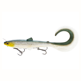 Met een subtiele rollende beweging, afgewerkt met een grote krulstaart, kun je dit kunstaas op elke snelheid vissen. Van super langzaam in ondiep koud water, tot een sneller tempo in de warmere maanden. Dankzij de extra draadlus onder de kin kun je een Switch Weight naar wens toevoegen en de zwemdiepte in enkele seconden veranderen. Het inline systeem zorgt voor betere inhakingskarakteristieken. Het aas is opgetuigd met onze extreem sterke en duurzame Jointed Stinger HD, gemaakt van samengevoegde latten en verbonden met een zware draad die in de kop van het aas schuift. Dit is een stinger systeem waar je op kunt vertrouwen. Of je nu werpend of slepend vist, dit zachte aas trekt grote roofvissen van heinde en verre aan. Trek de sleep aan en hou hem goed vast!