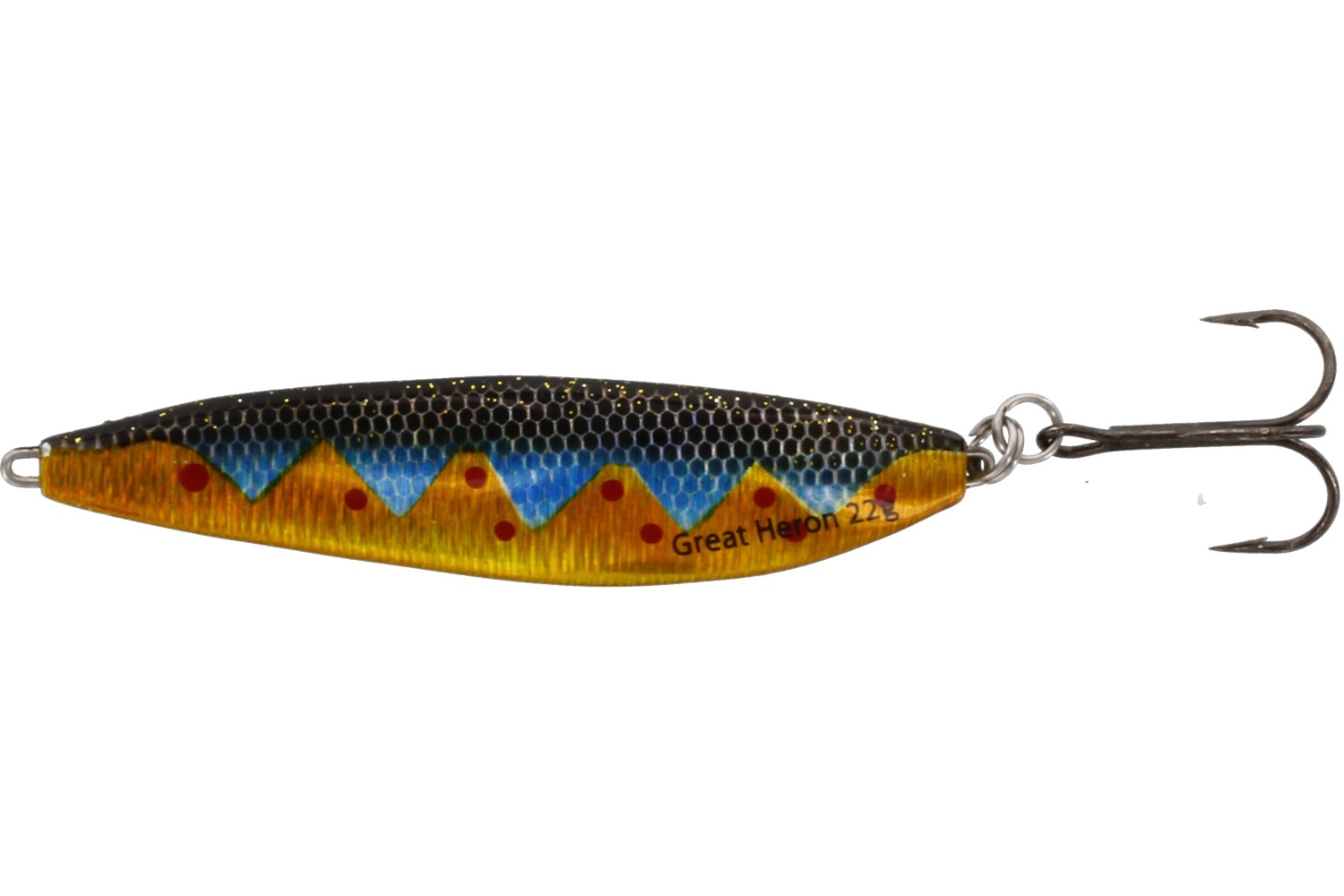 Great Heron is een kunstaas ontworpen volgens Finse kunstaastradities. Het is gemaakt en getest in samenwerking met ervaren vissers uit Finland en Zweden. Vanaf het begin is het een zeer efficiënt kunstaas gebleken - niet alleen voor forel en zalm, maar ook voor soorten als roofblei, baars en snoek. Great Heron kan snel of langzaam worden binnengehaald. Ongeacht de snelheid heeft hij een zeer levendige actie die de aanbeet zal uitlokken. Geen wonder dat dit kunstaas is uitgegroeid tot een van de populairste in Scandinavië!