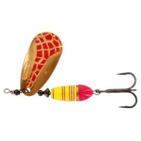Het fraai vormgegeven messing blad reflecteert licht vanuit verschillende hoeken. Het draait bij de geringste aanraking van de reelhendel en brengt die bewegingsimpulsen op gang die geen forel, zalm of ander roofdier kan weerstaan. Dit is gewoon de best uitziende en meest aantrekkelijke spinner die er is en de sterke Japanse stijl haken zullen de test van zelfs de hardst vechtende vissen doorstaan.