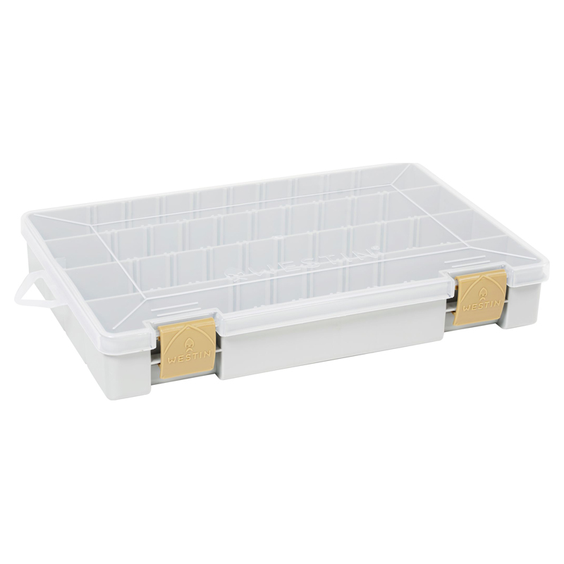 Westin W3 Tackle Box 27,5x18,5x4,5cm Grey/Clear is een aasbox met meerdere compartimenten en verstelbare verdelers. Een geschikte opslag voor zowel zacht als hard aas!