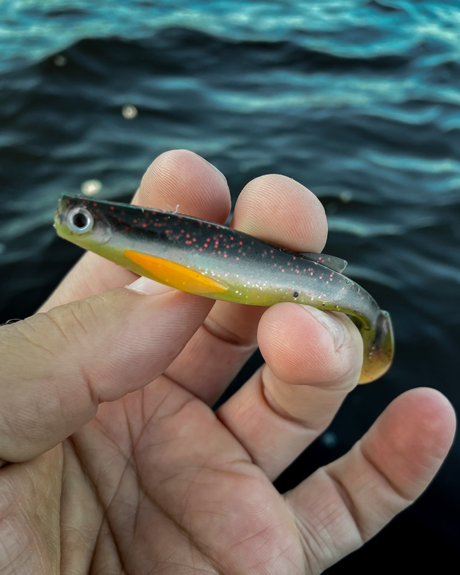 Scout Shad 9 cm har en nätt och attraktiv profil för att immitera ett lite snack för predatoren.